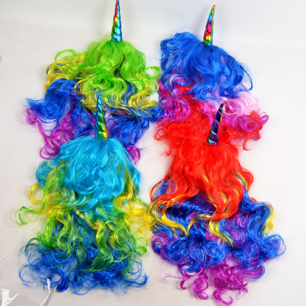 * Kaunis värvikirev parukas sükssarviku sarvega