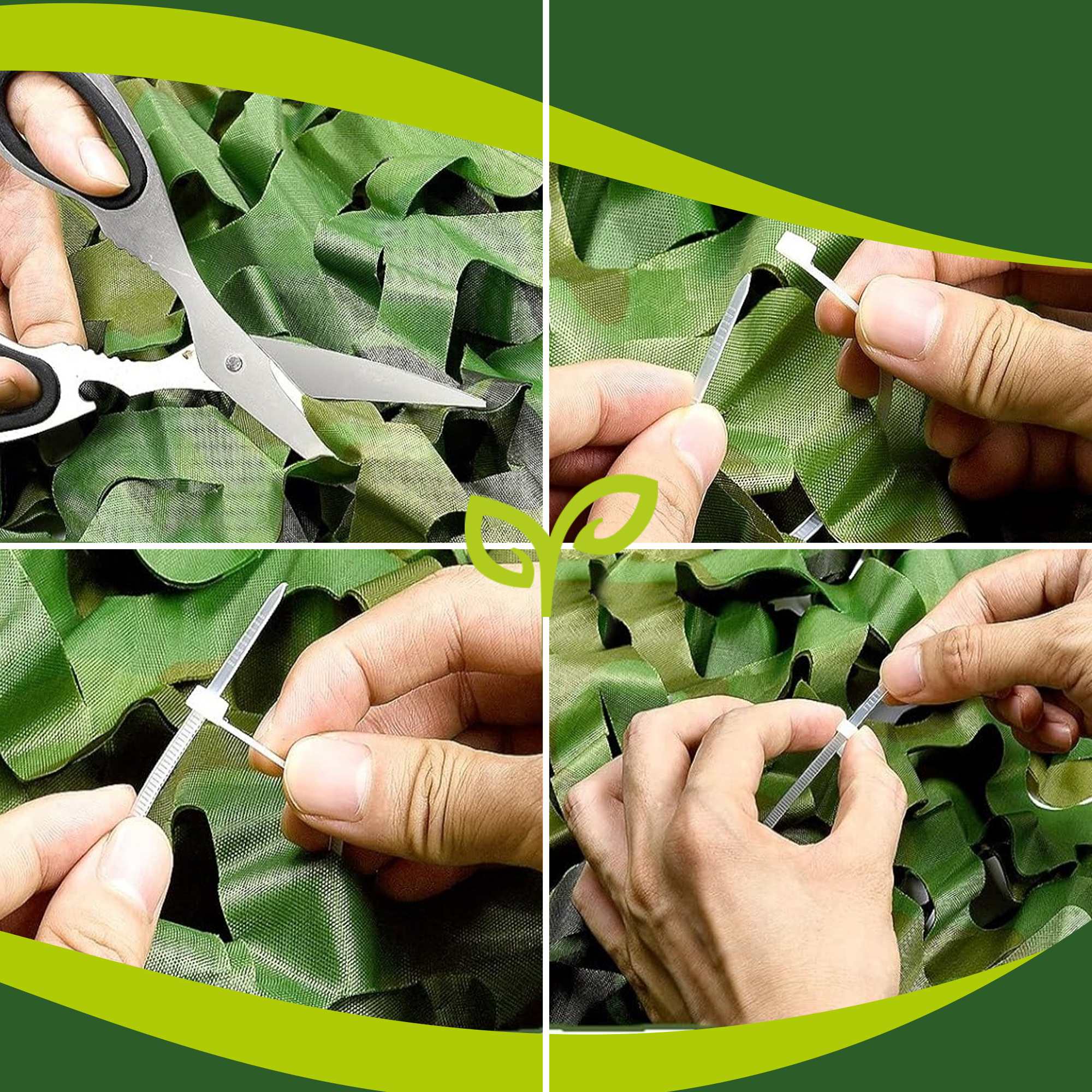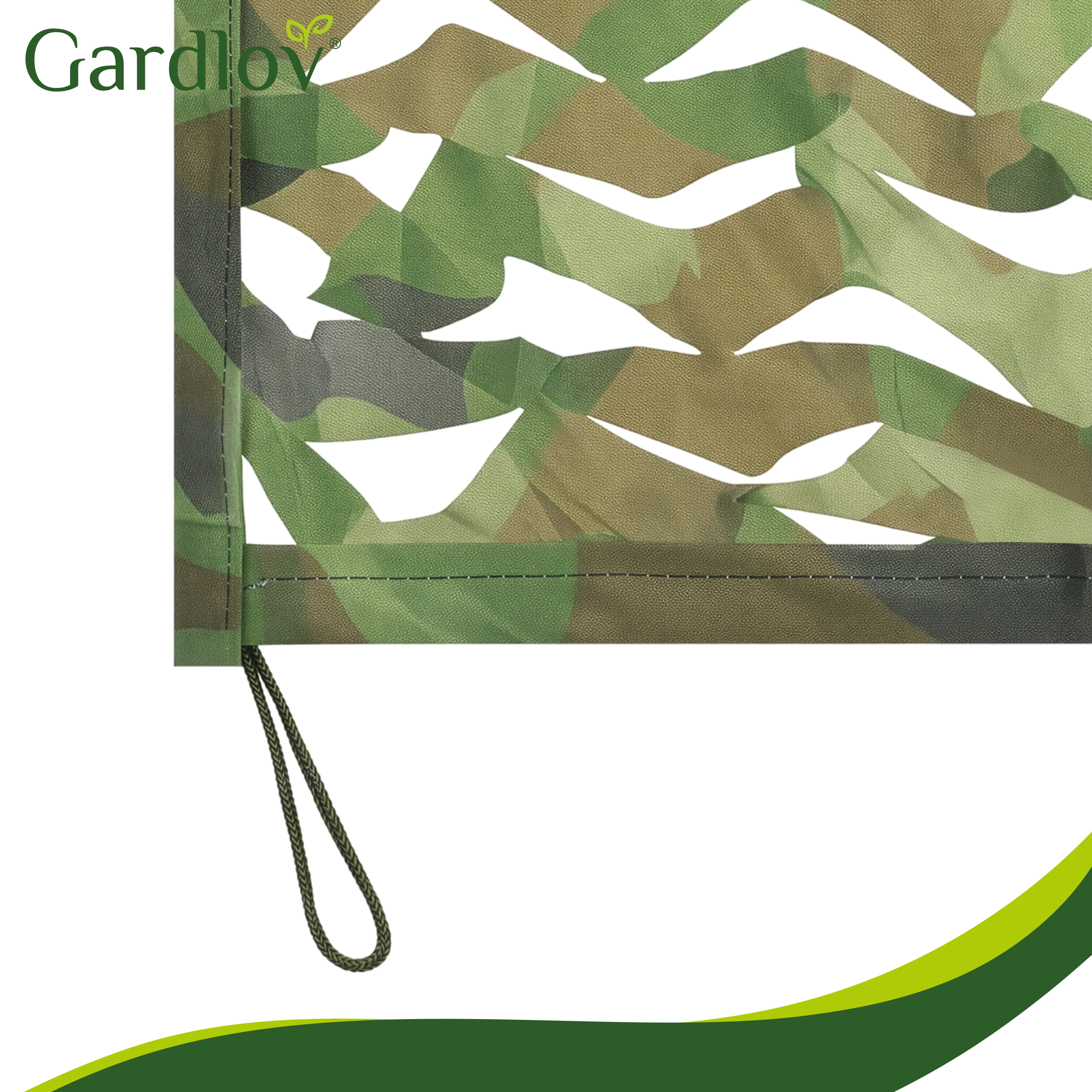 See kamuflaažvõrk ühendab suure kattepinna, ilmastikukindluse ja lihtsa paigalduse – praktiline valik nii aeda kui välitingimustesse.