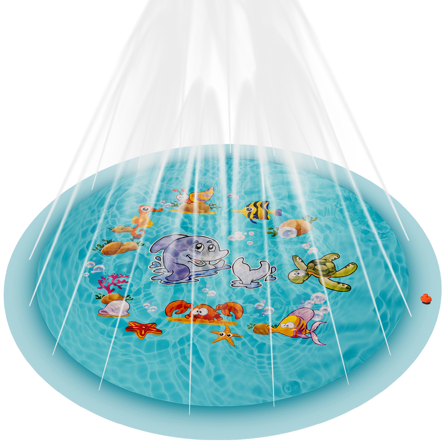 - Lõbus mereteemaline disain – värviline muster ja purskkaevu funktsioon köidavad tähelepanu ning innustavad aktiivsele veemängule.