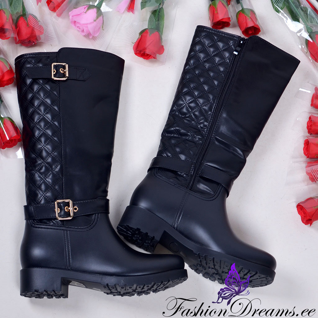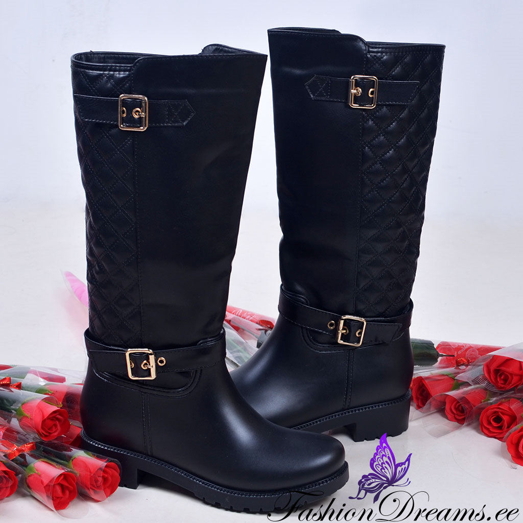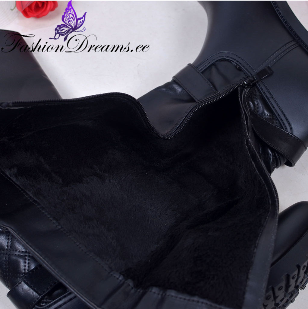 * Küljel dekoratiivsed kuldsed pandlad, millega saab mingil määral ka sääreosa laiust reguleerida.