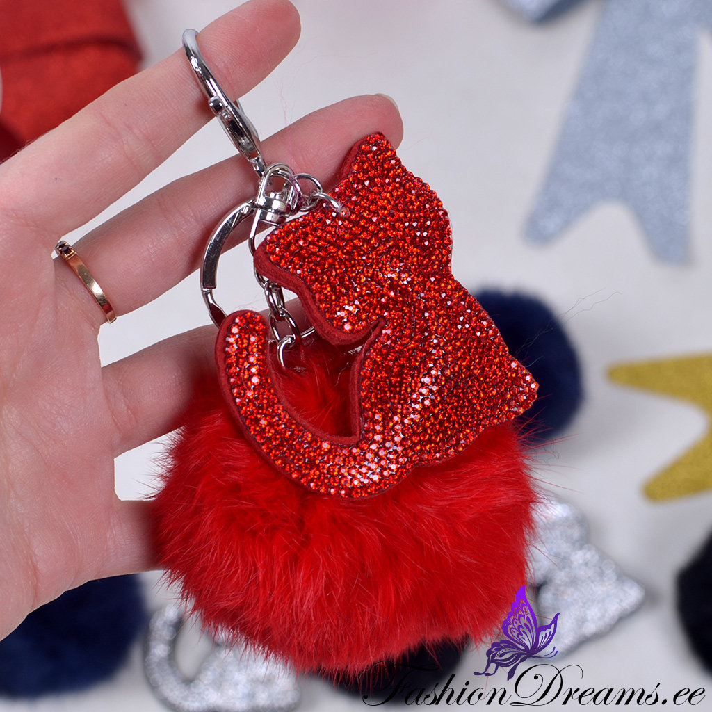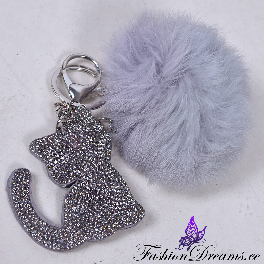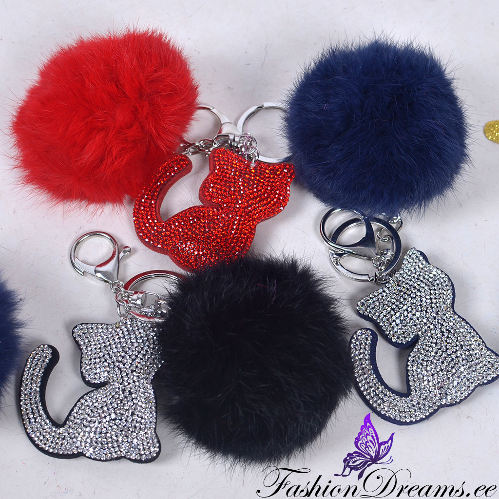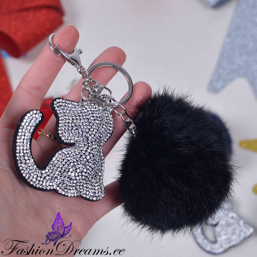 * Küljes ülipehme karvapall ja ohtrate sädelevate kristallikestega kaunistatud kassi figuur